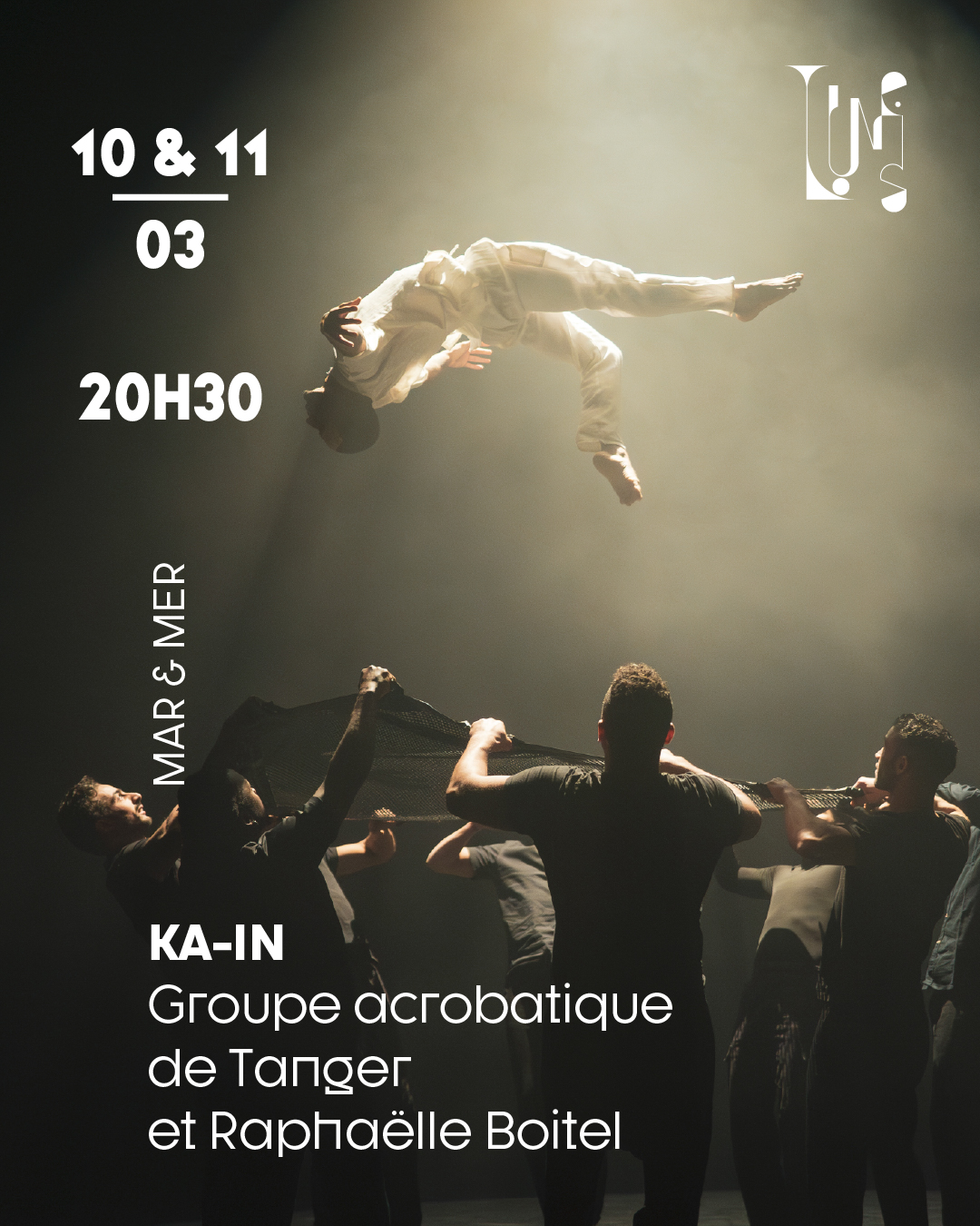 Depuis 18 ans, le Groupe Acrobatique de Tanger n’a cessé d’interroger son patrimoine acrobatique. C’est pour cette raison qu’il a convié Raphaëlle Boitel pour explorer d’autres voies, bousculer ses mouvements et ses corps. L’artiste s’est inspirée de la culture berbère – ses mystères, son mode de vie – et d’un cirque terrien, bondissant, qui repousse les limites de l’équilibre.